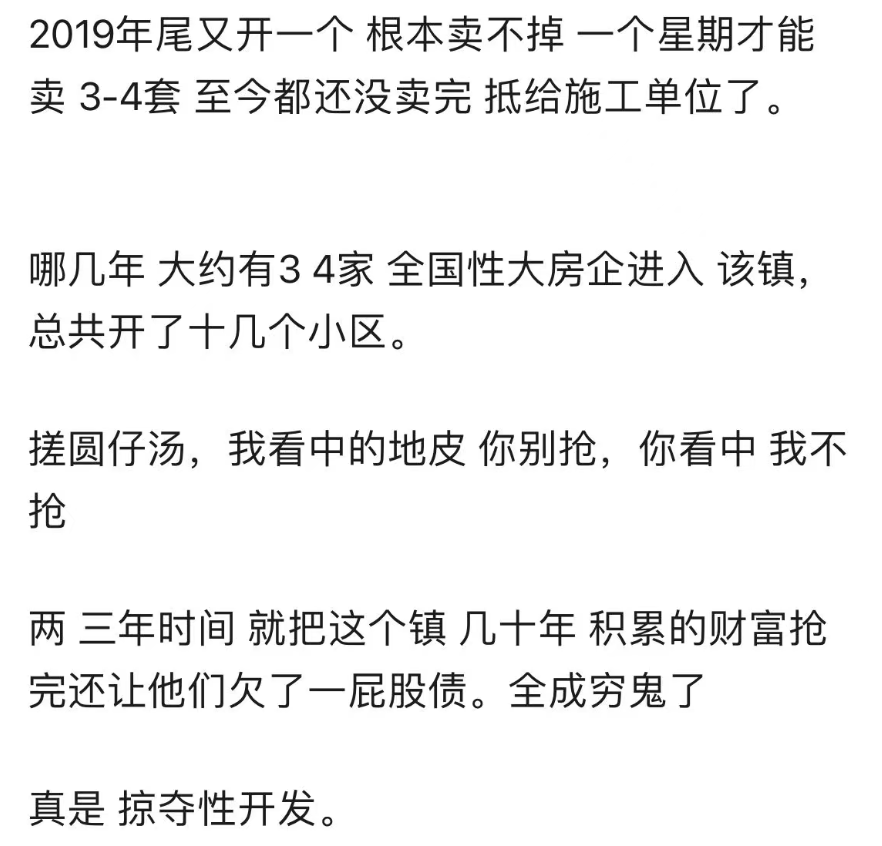 到后面就开始卖不动了,在这里,这个网友给出了概括,就是掠夺性开发。
