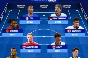 中场:昆达(葡萄牙U21,4500万欧)、埃利奥特-安德森(英格兰U21,3200万欧)、阿奇-格雷(英格兰U21,3800万欧)、恩瓦内里(英格兰U21,5500万欧)